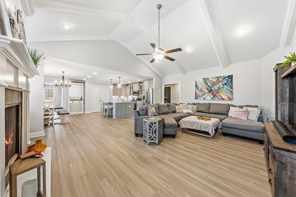 Just three years old, this pristine 1.5-story home is ideally positioned on a spacious .63-acre cul-de-sac lot in The Orchards subdivision of desirable Harris County. Luxury vinyl plank flooring welcomes you at the entry and flows throughout the main living areas, complementing the home's open floor plan. The vaulted family room features a gas-log fireplace with hearth and mantel and flows seamlessly into the eat-in kitchen, complete with a bar-top island, gas cooking, quartz countertops, farmhouse sink, stainless steel appliances, and a double-door pantry with custom shelving. The main-level primary suite offers LVP flooring, a custom accent wall, a large walk-in closet, and a well-appointed ensuite bath with double quartz vanity, tile shower, and separate dressing vanity. The split floor plan provides three additional bedrooms, including a private guest suite with its own bath, plus two bedrooms sharing a hall bath; each with its own walk-in closet. Upstairs, a bonus room with closet and half bath offers flexible space ideal for a home office, gym, playroom, or additional bedroom. The laundry room is conveniently located just off the 2-car garage entry. Enjoy outdoor play in the expansive backyard with privacy fencing. Community amenities include sidewalks and a neighborhood pool with pool house. Zoned for New Mountain Hill Elementary, Creekside Intermediate, Harris County Carver Middle, and Harris County High School. Conveniently located near I-185 with an easy 15-minute drive to Columbus.